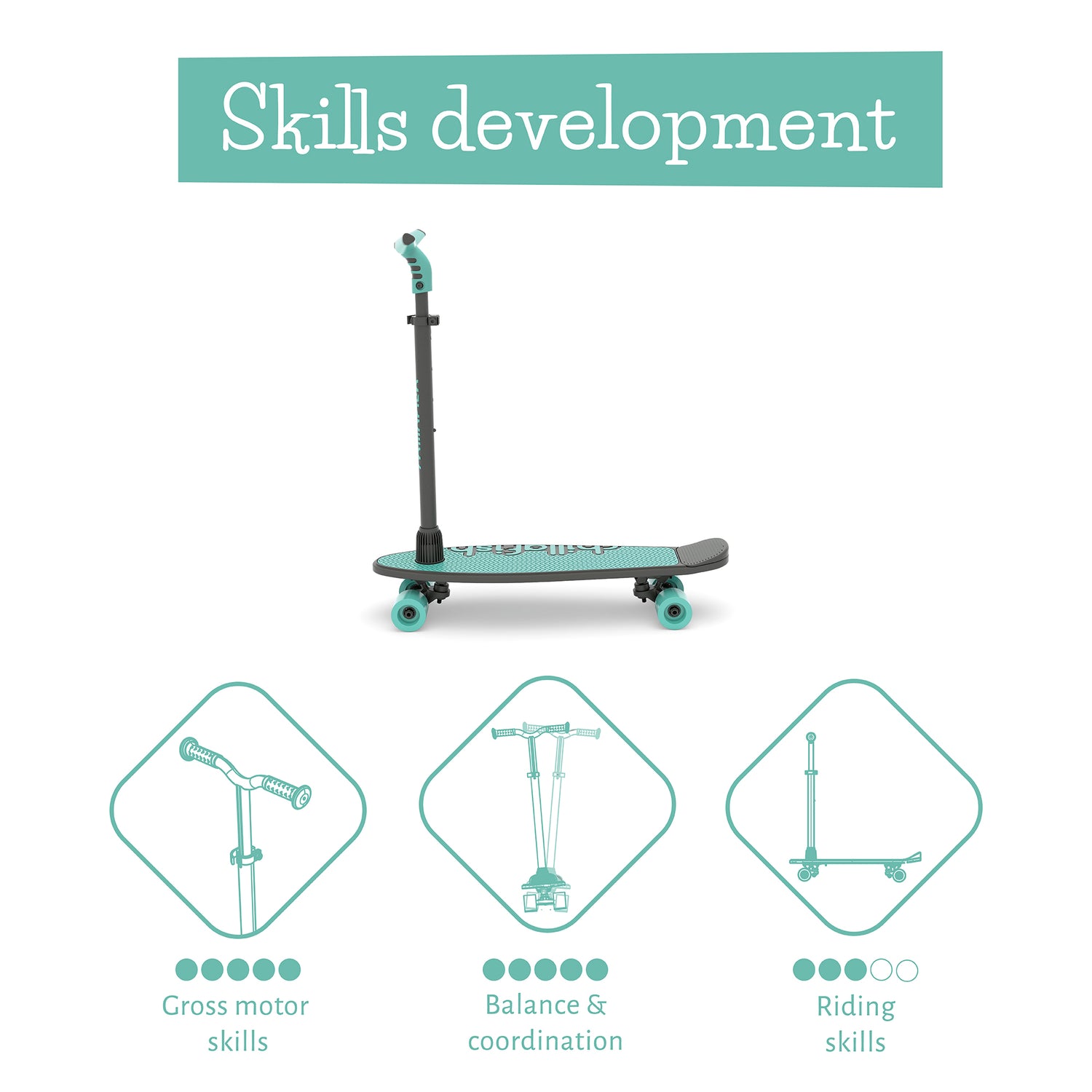 - 3歳から遊べる、カスタマイズ可能な2-in-1タイプのスケートボード&スクーター。