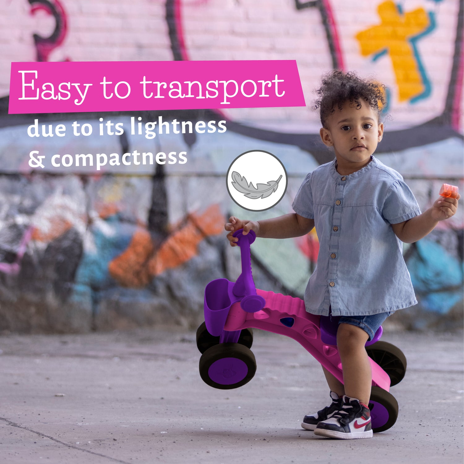 - De ItsiBitsi Blocks is stevig maar triggert toch een eerste gevoel voor evenwicht. Het is een lichtgewicht waardoor kinderen de vierwieler makkelijk kunnen hanteren, terwijl de ouders de ItsiBitsi Blocks handig kunnen dragen voor een blokje om.