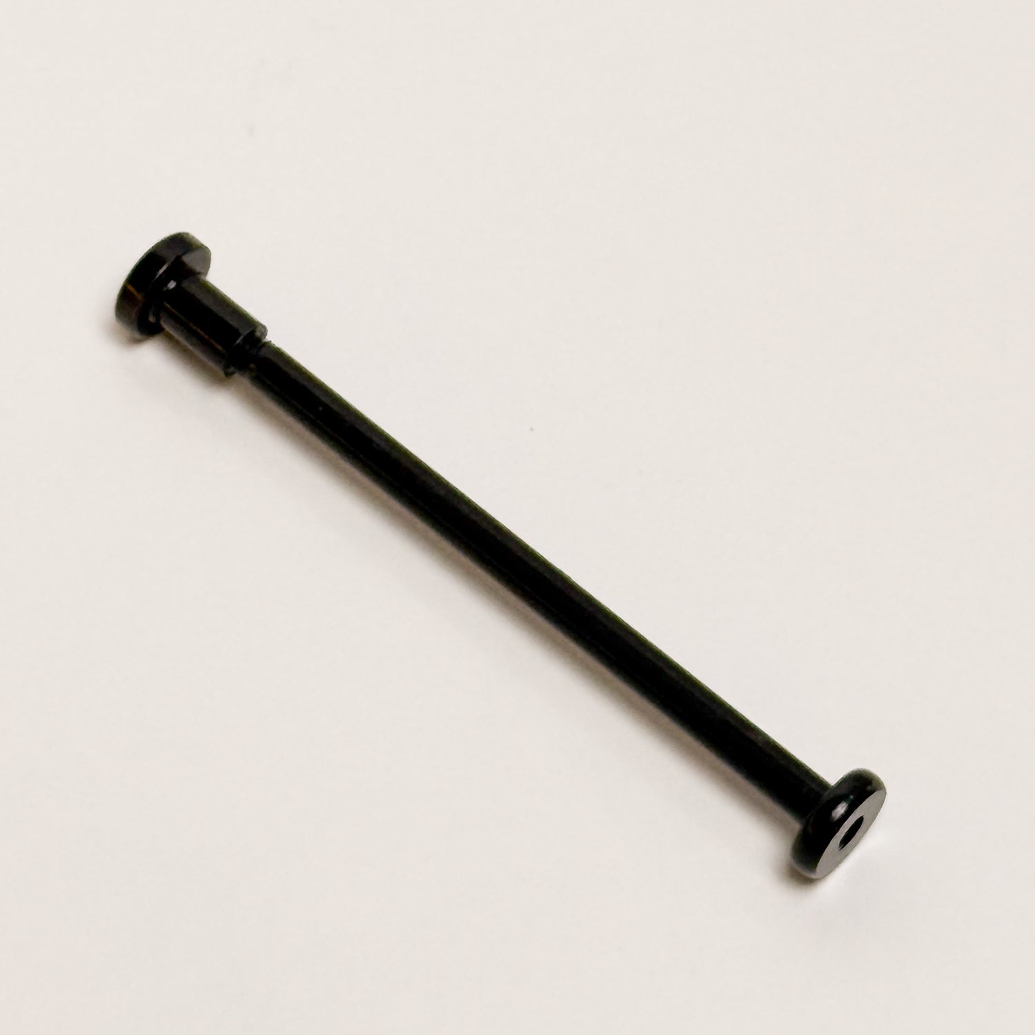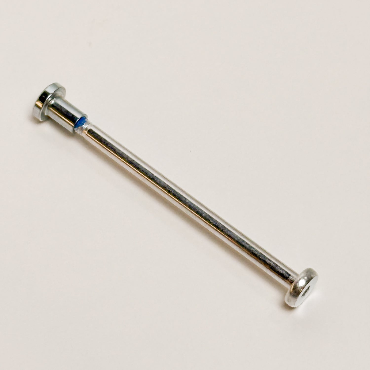Universele zilverkleurige as+moer die past op zowel de voor- als achterkant van CHARLIE-familie wielen.
