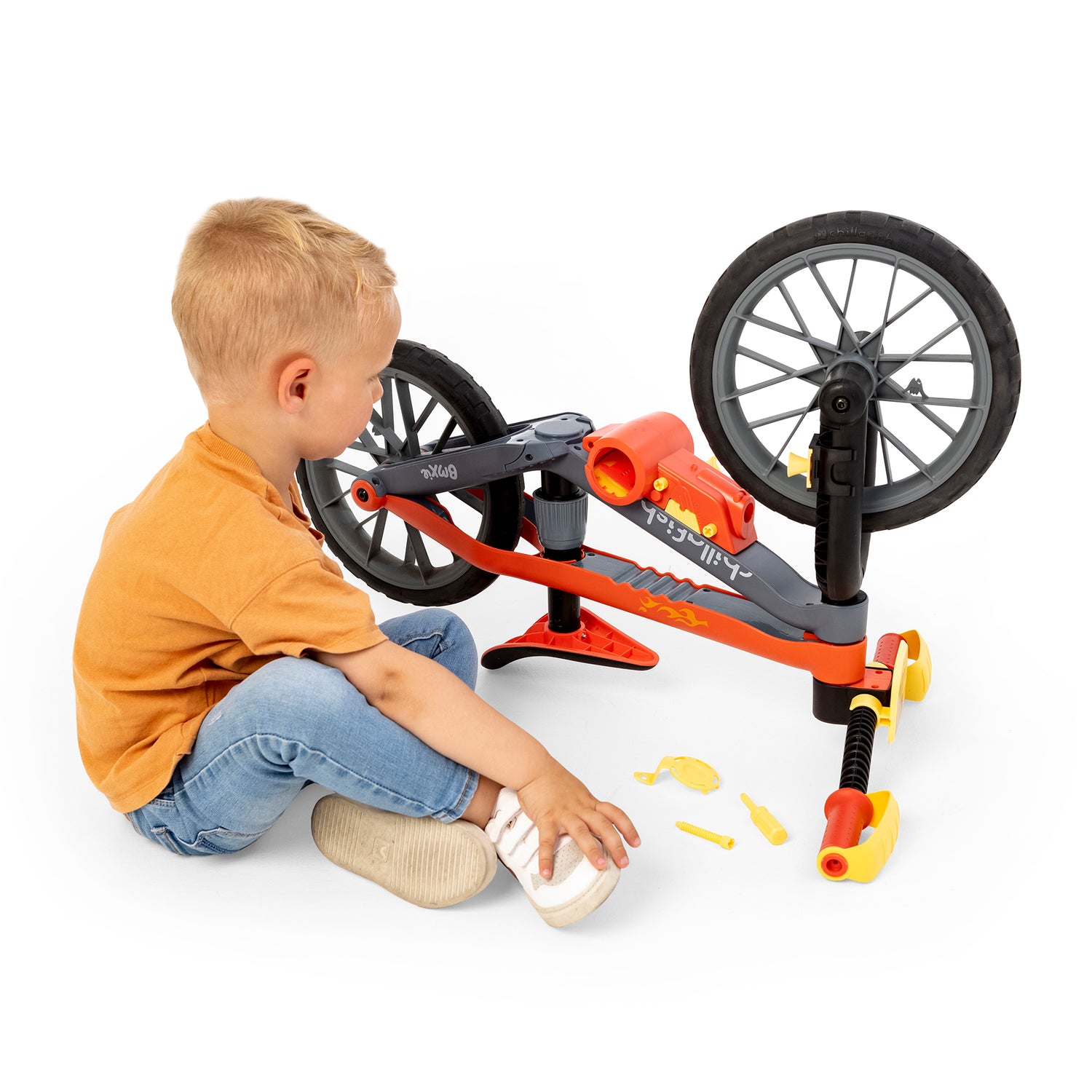 - The BMXie MOTO balance bike doesn't compromise : a real BMX-styled bicycle frame, oversized tubing but extremely lightweight. Super-duper cool design, adjustable seat without tools and with integrated play motor & sound ‘turbo cards’.
