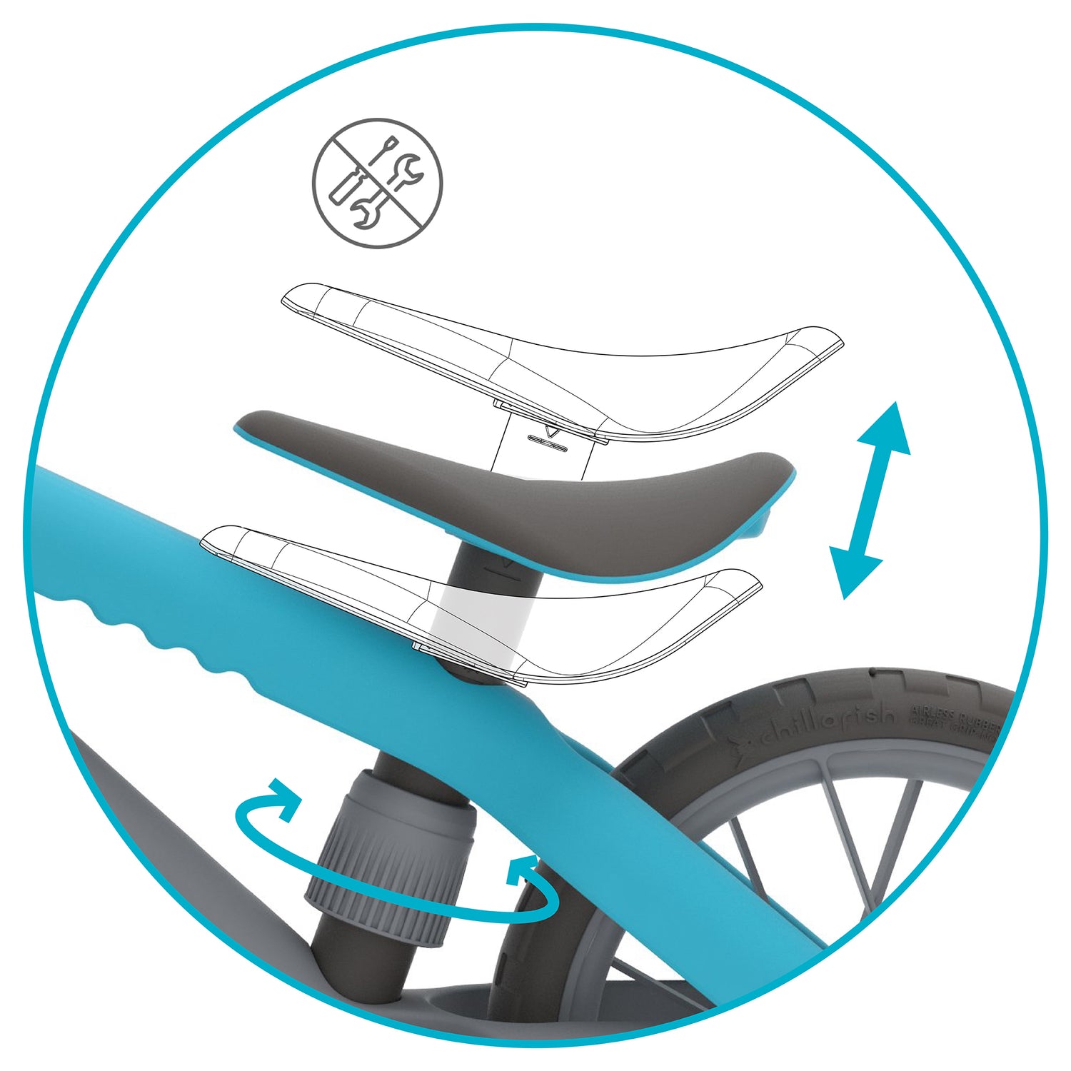 - Airless Rubber Skin tires give you the best grip possible, and you don't even need to inflate them. A foam core means they cannot puncture; an outside rubber layer makes them just like rubber tires, unlike other foam tires on the market.Great grip and no pumps - that's best of both worlds. Exactly what every Chillafish balance bike needs!