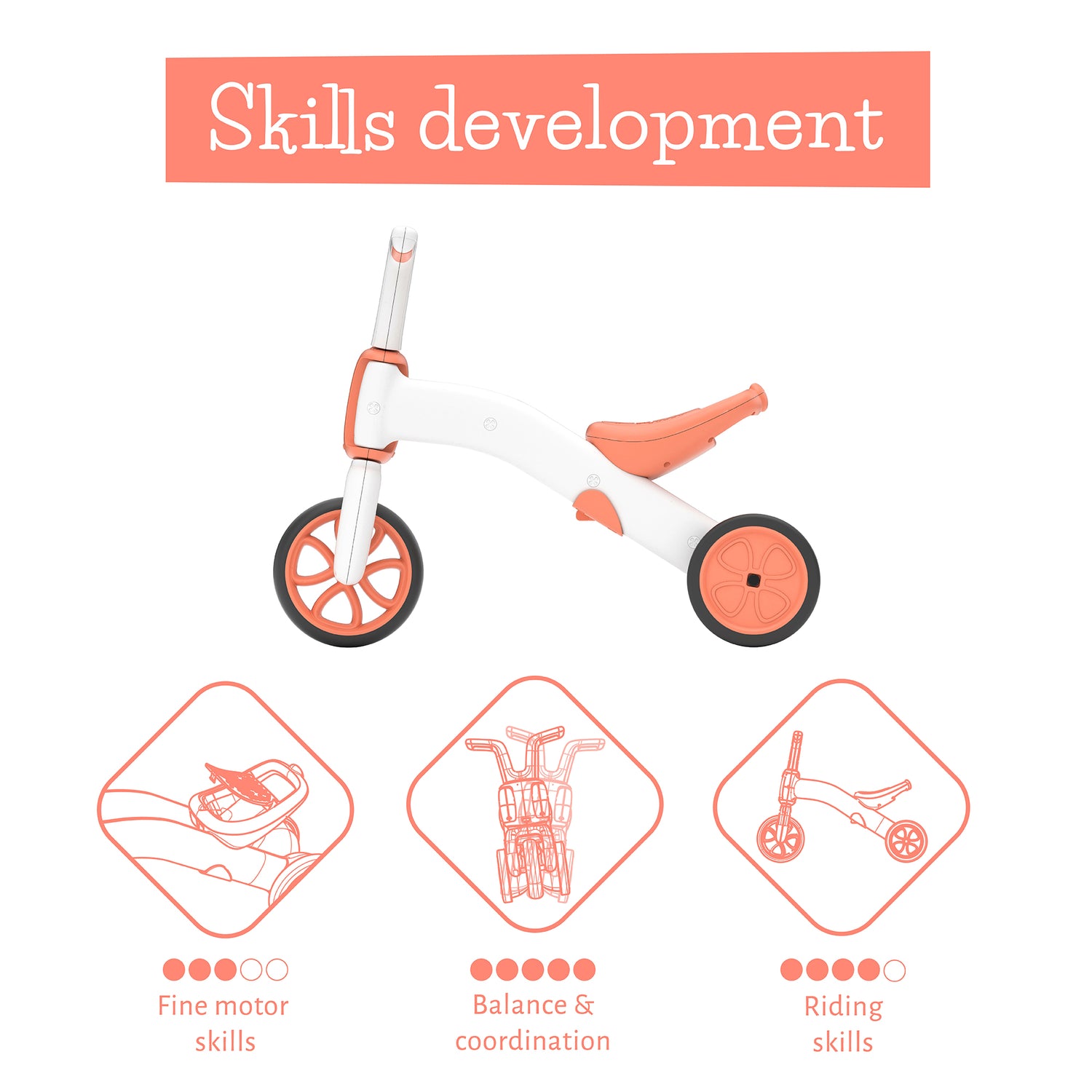 - 2-in-1 gradual balance bike and tricycle for kids of 1-3 years;