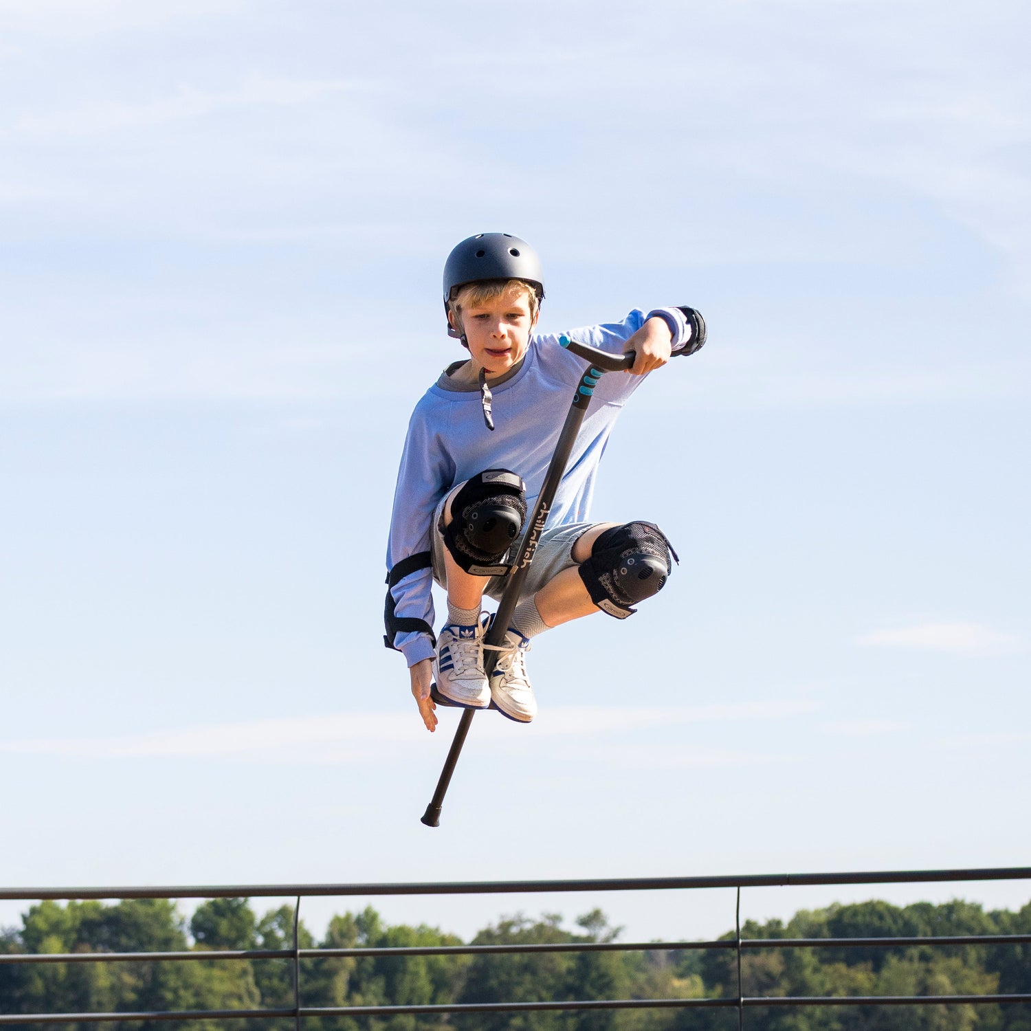 Chillafish Poogi kids version is a pogo stick designed with fun extra challenges. Can you pogo with 1 hand? Or even with 1 foot? This fun pogo stick has a centralized extra foot pedal and an ergonomic handgrip to try one handies or one footies. Challenge yourself for some extra fun! Practice balance by switching from two feet to one! And then try to let go of a hand too, step by step. The versatile soft-touch handgrip is designed for one or two hands. The pogo stick is engineered with a tireless strong spring inside the tube that will keep you going forever. It's great for gross motor skills development and physical fitness. Challenge your friends and jump as high as you can! Play longer! Available in 3 cool colours and comes fully assembled in the packaging, ready to bounce! Recommended age: 5+ years Max weight: 36 kg (77 lbs)