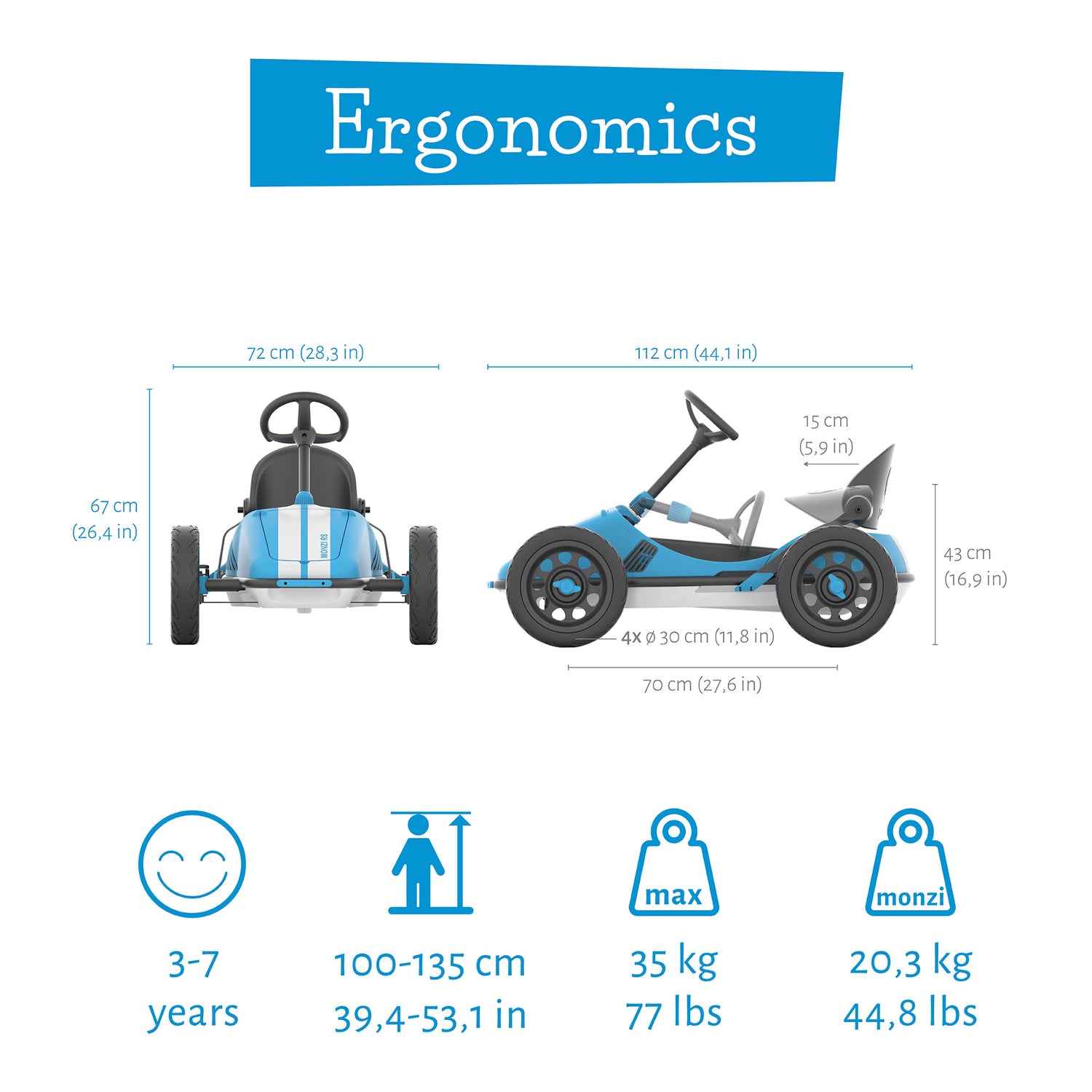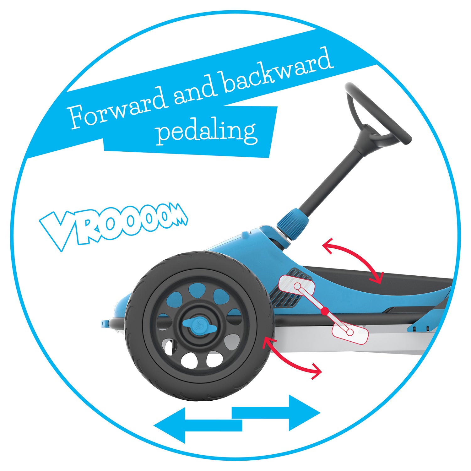 - Innovative foldable pedal go-kart in a stunning retro-modern race design with forward and backward pedaling function.