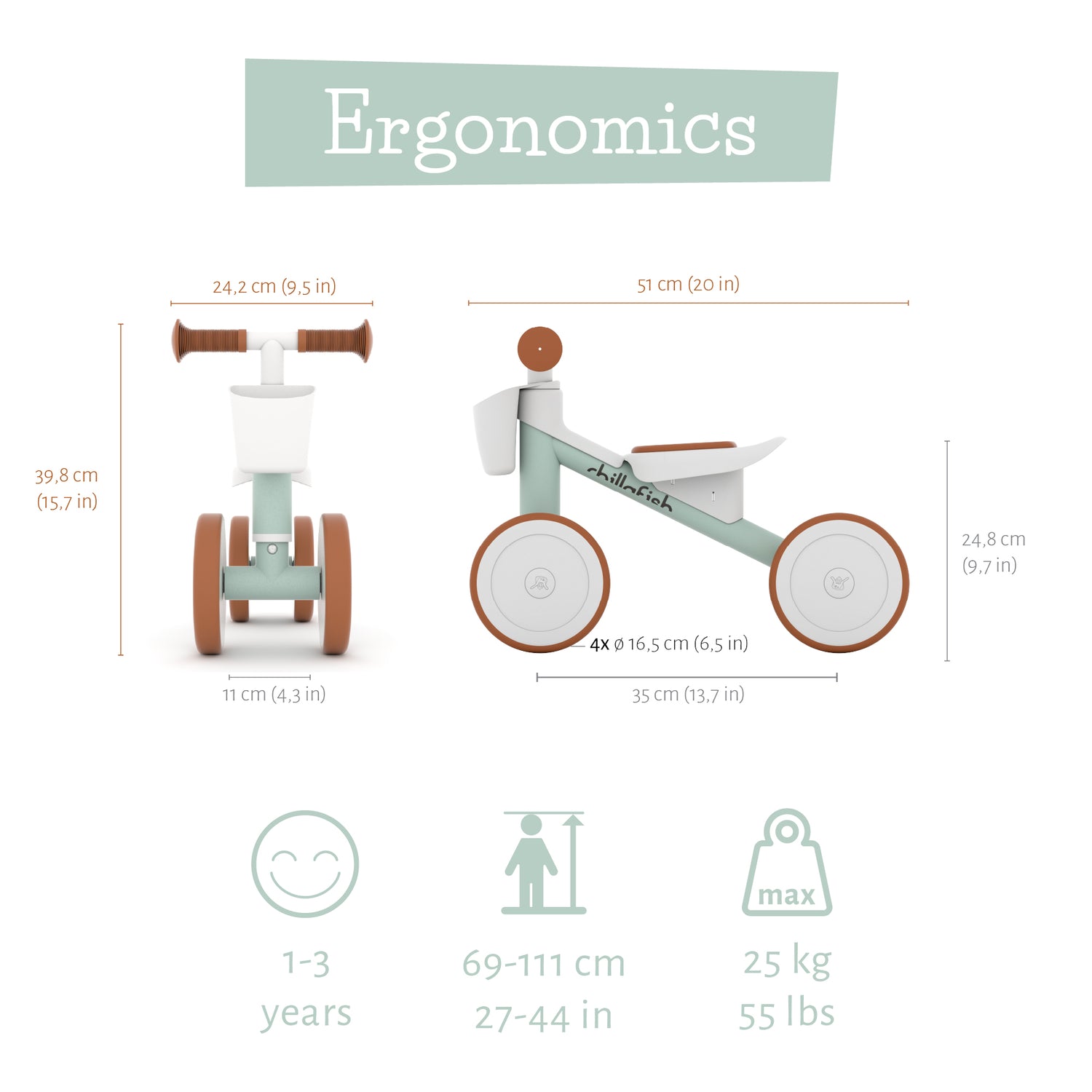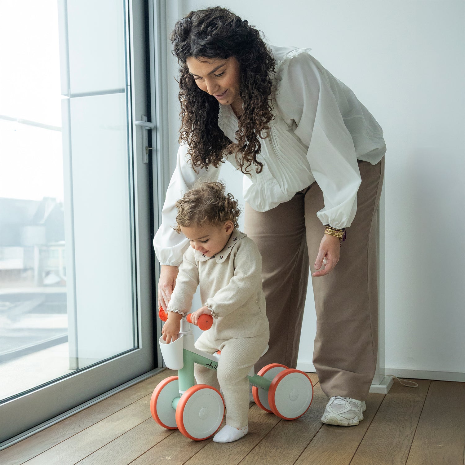 Quadi Racer takes the 4-wheeler back to its roots. This cute 4-wheel ride-on is the perfect buddy to grow up with and to explore the world in style. Quadi Racer is a very stylish ride-on toy for learning the first rides, learning to steer, push-off, move forward and backward in a fun and safe way. The basket in the front makes it easy to take your favourite toys everywhere. The carry handle makes it super easy for daddy or mommy to take along this lightweight ride-on toy. The seat is comfy and soft and the wheels are silent and non-marking TPE rubber, for indoor and outdoor use. Now toddlers can also ride in style ;-)