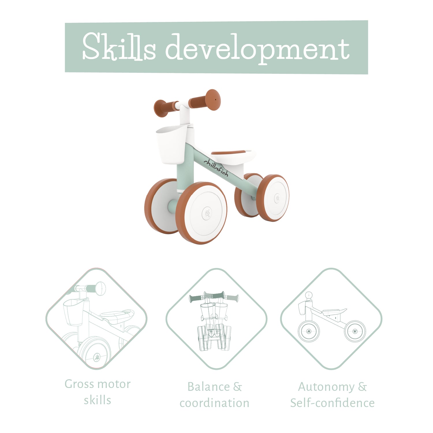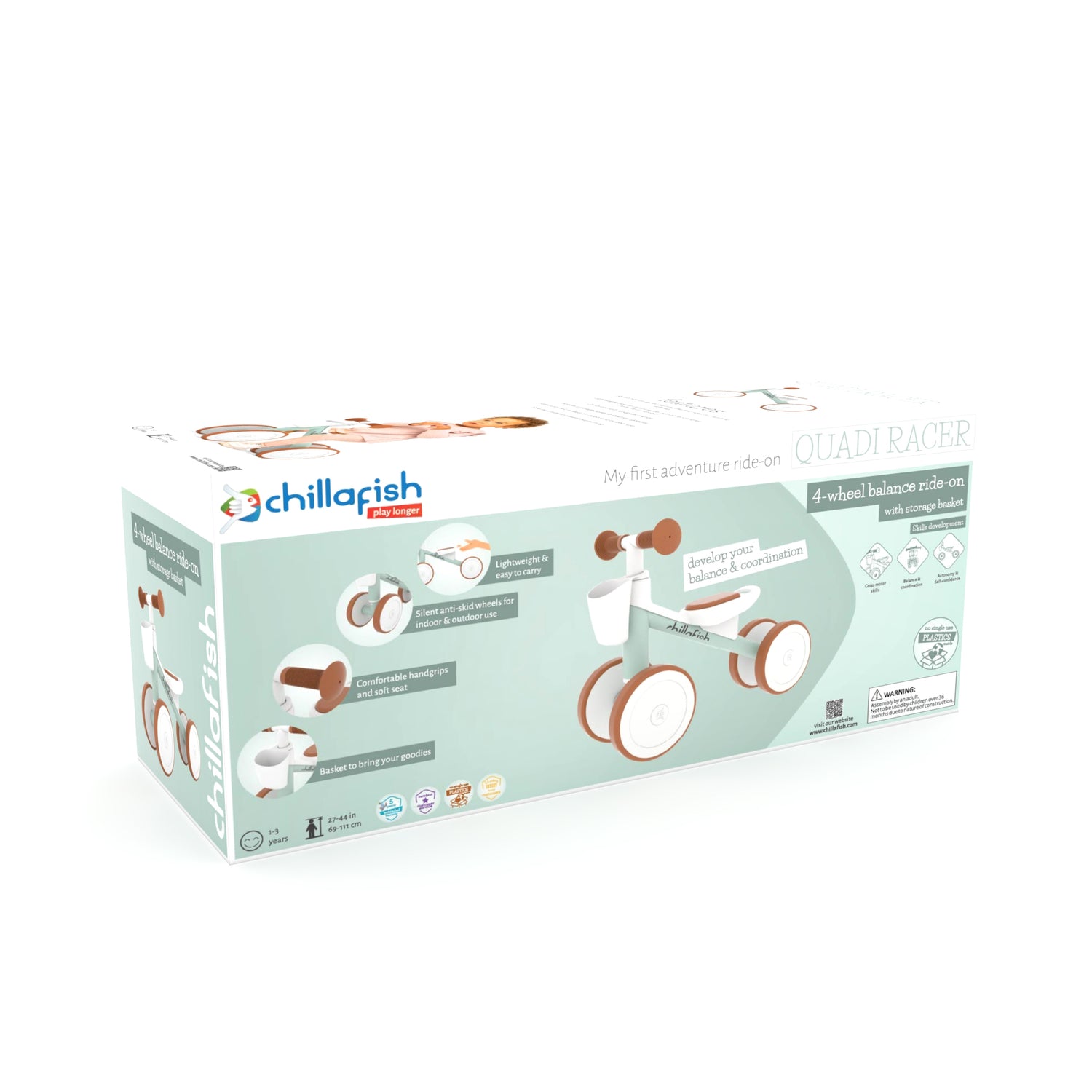 Quadi Racer- 4-wheel balance ride-on with storage basket