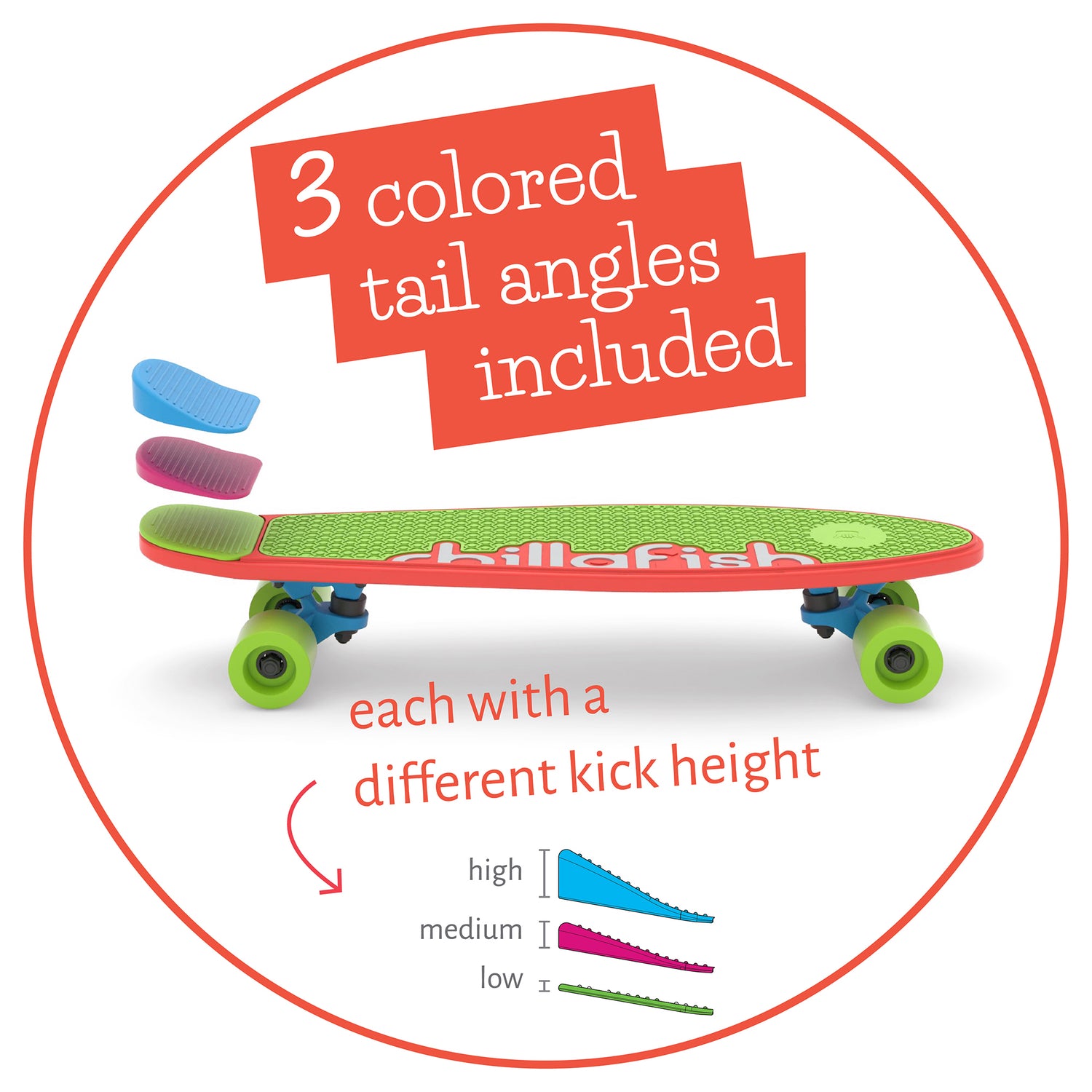 - Customize your riding style: 3 tail heights to fit your learning and riding style; flat, medium, high. Start off with the flat one for most safe learning.