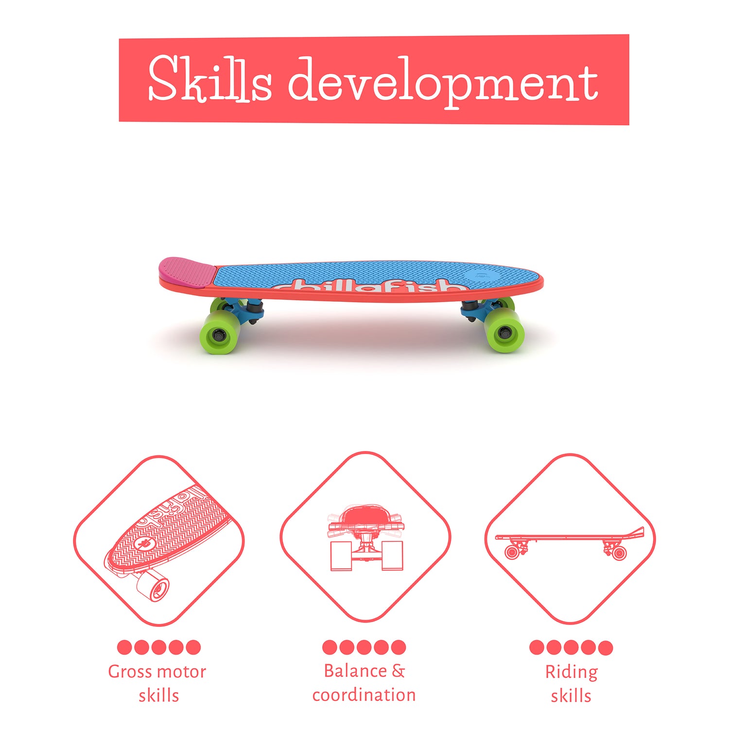 - Customizable skateboard, for kids from 3 years and up, the best way to learn to skate and to develop your gross motor skills, easy for all ages.